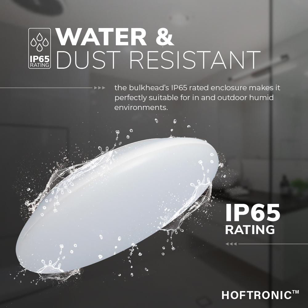 Not only is the LED bulkhead CCT IP65 ray water resistant, the dimmable LED bulkhead CCT is also made of high-quality materials that can take a beating. The IK value is IK10, which makes the luminaire of the bulkhead vandal-proof.